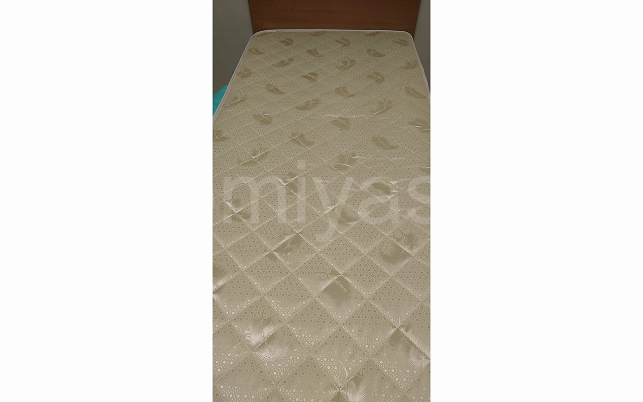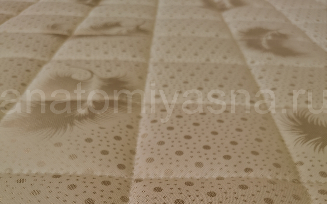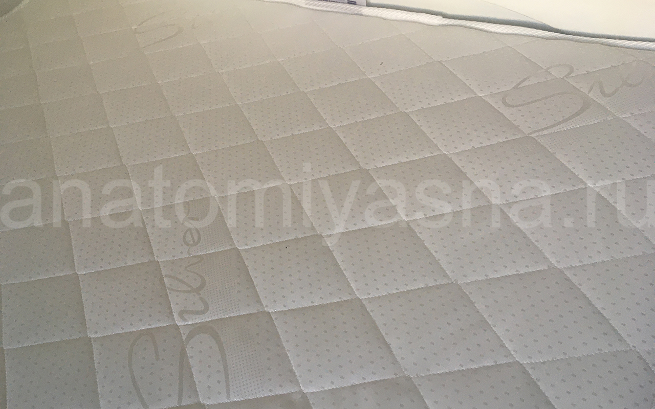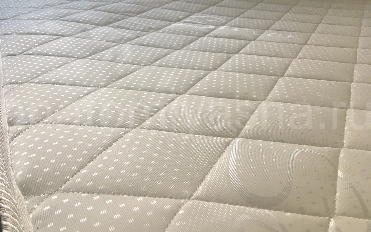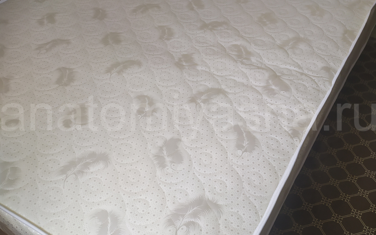 Верхнее покрытие матраса изготовлено из материала трикот - искусственная ткань на основе синтетического волокна полиэстра. Материал обладает повышенной плотностью и износостойкостью. Трикот используется в производстве домашнего текстиля, а также для производства верхнего покрытия матрасов, чехлов, наматрасников.