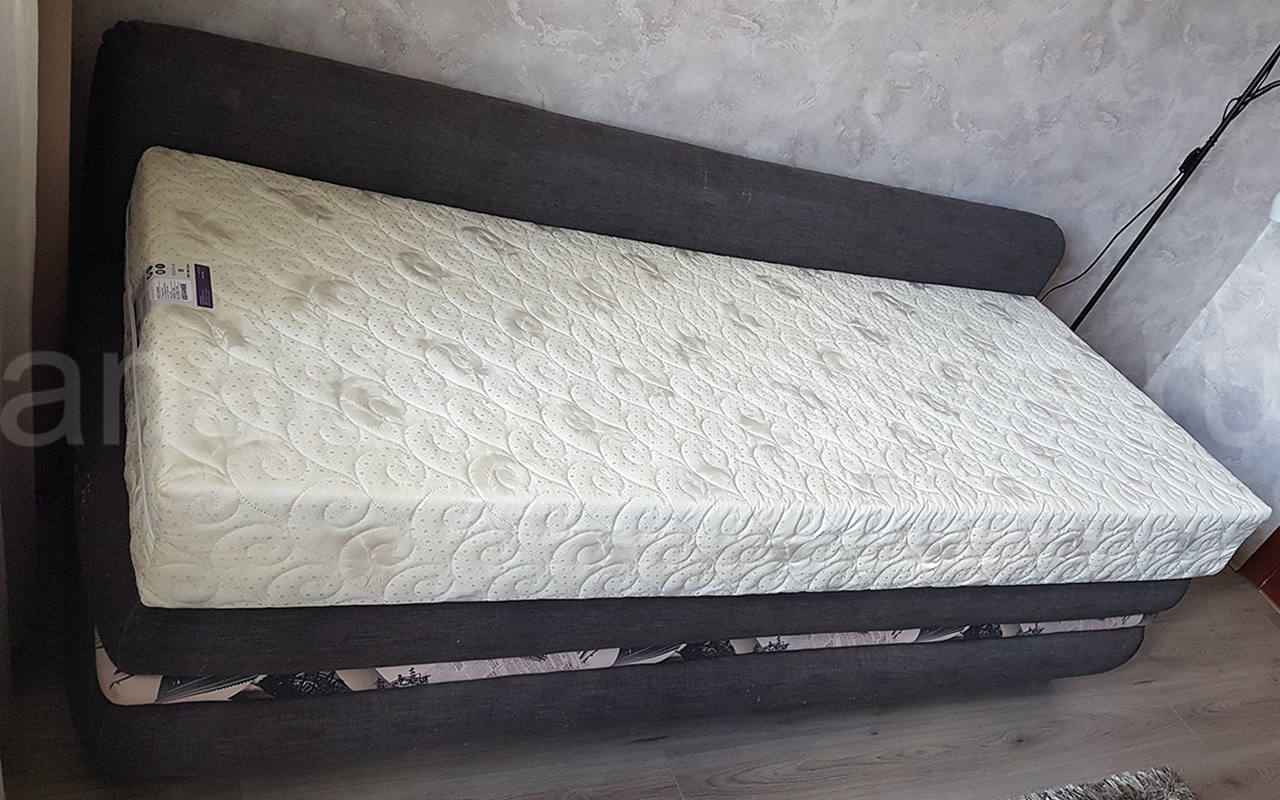 Комфортный наполнитель ППУ придает умеренную жесткость спальному месту. Однако, из-за способности материала впитывать влагу не рекомендуется использовать такие модели во влажных помещениях.